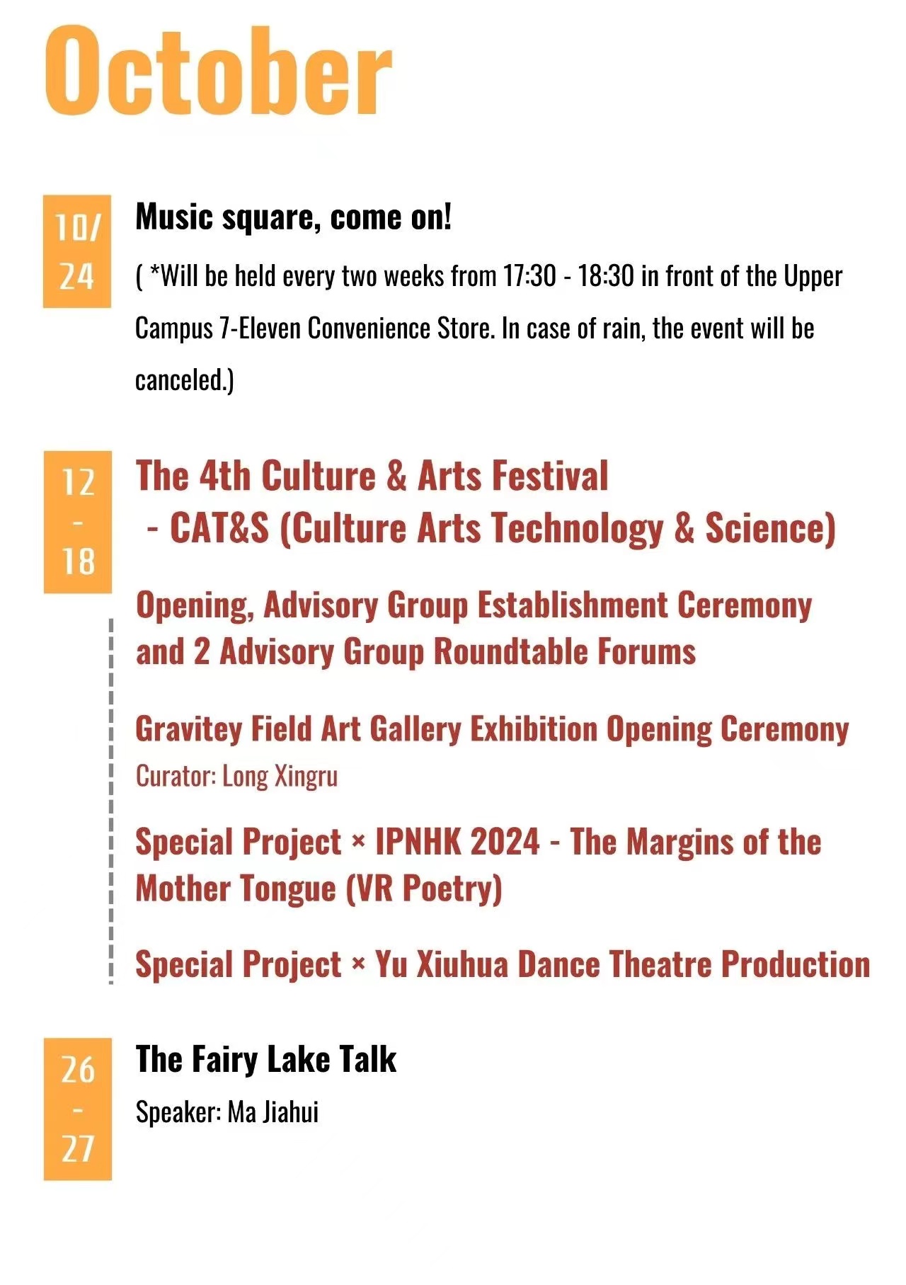 UAC Second Half Year Activity Calendar