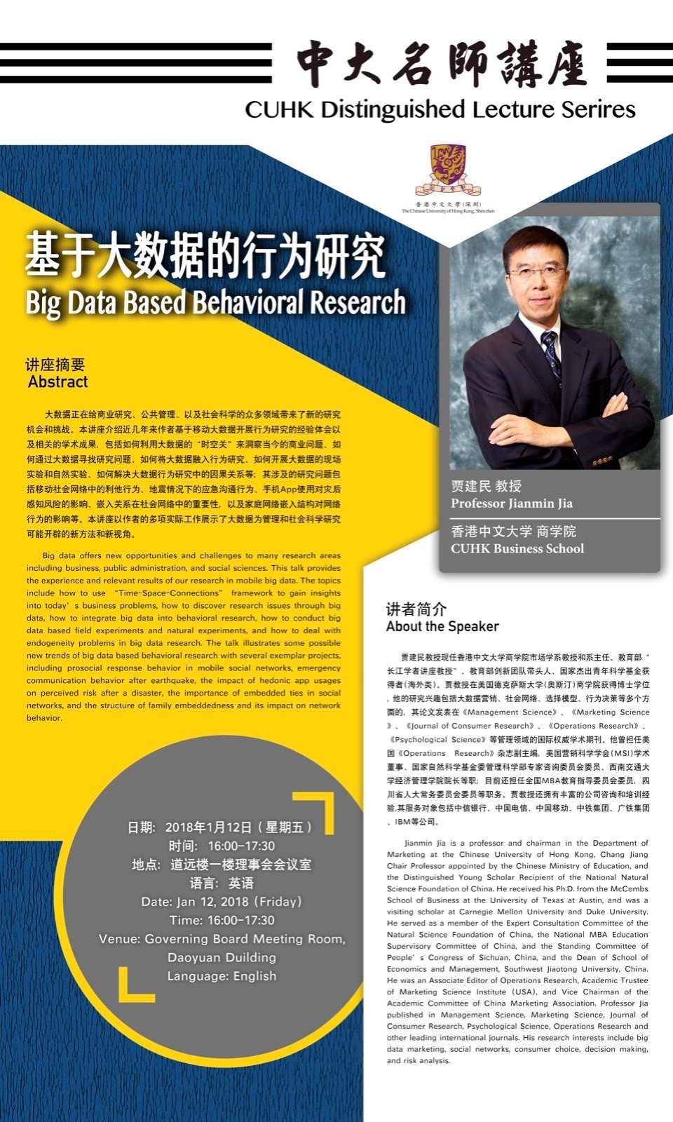 【CUHK Distinguished Lecture Series】Big Data Based Behavioral Research