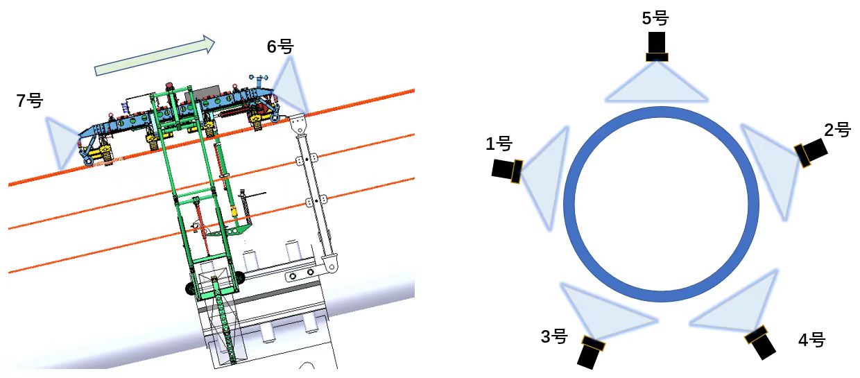 機器人攜帶的視覺傳感器陣列采取環形包圍式分布,增加了自動調距功能,檢測相機安裝在由輕質復合材料構成的支撐臂末端,可根據主纜直徑自動調節位置,獲取高清表觀圖像,實現主纜全覆蓋檢測。
