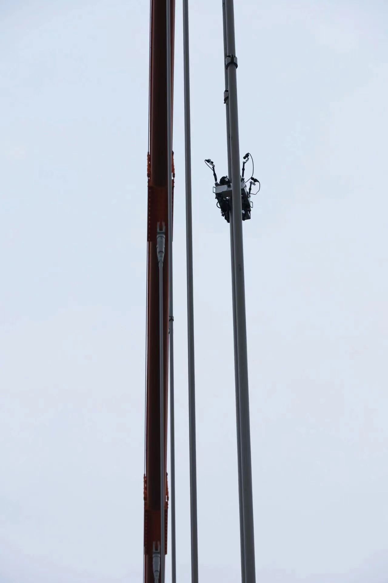 測試中,“攀登者號”協助排查出螺栓松動、缺失、凹坑等缺陷,并在中跨成功登頂索塔。此次登頂驗證了“攀登者號”卓越的動力性能和長距離攀爬能力,為懸索橋主纜智能化檢測提供了新裝備和新方法。