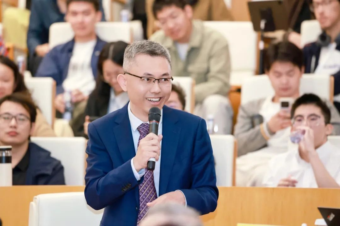 陳茂波司長在演講結束后,親切接受師生們提問。同學們就人民幣國際化、中國企業出海、香港發展創科的重點、加強深港合作及未來就業機遇把握等向陳司長提問請益。陳司長親切地為同學們撥開謎團,答疑解難?;臃諊鸁崃揖剩粫r爆發出陣陣掌聲。