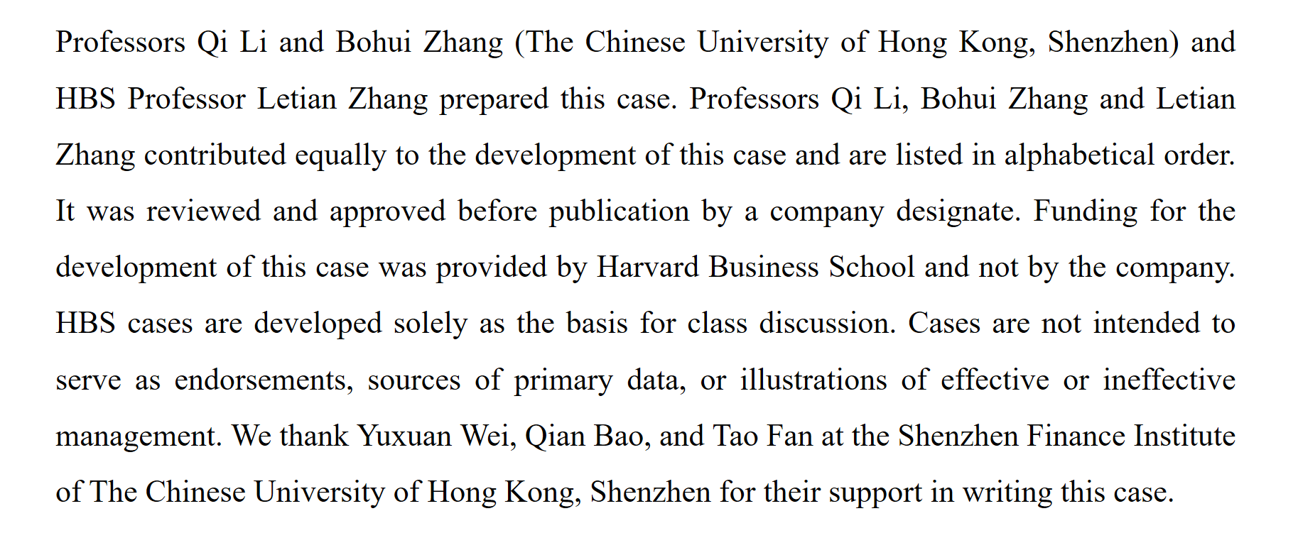 此次案例的成功入選,不僅體現了香港中文大學(深圳)經管學院及深圳高等金融研究院科研工作者扎實的研究能力和教學水平,也彰顯了我院近年來在推動“產教融合”“學科交叉”方面的顯著成效。此外,本案例的撰寫和發布是一個從“本土故事”走向“全球課堂”的生動實踐,希望以此為契機,助力中國企業走向國際舞臺,在為全球學習者提供啟發與思考的同時,也為中國企業創造更多走向世界、對接世界的機遇。