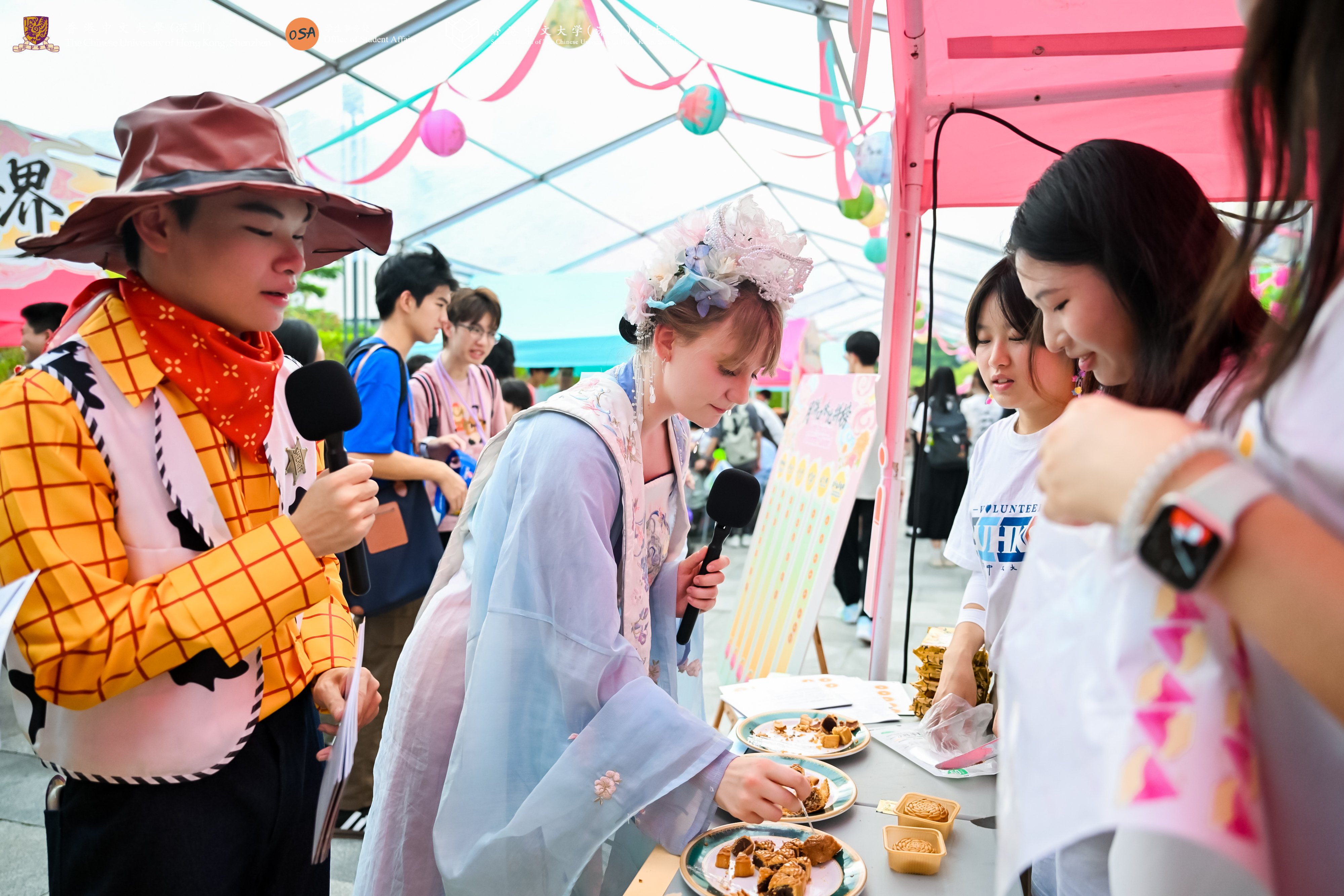 外場游園集市圍繞 “月亮” 與 “童年” 展開,靈感源自 “猴子撈月” 故事。下午 4 時 30 分,大學麒麟隊舞麒麟表演拉開市集序幕,身著漢服的英國交換生與主持人共同體驗活動。現場 60 余位還原童年角色的 NPC、童年歌曲串燒及《愛情公寓》情景演繹喚起回憶,近十個學生社團設射箭、手工藝等攤位,“童年小零食”“糖畫” 等攤位人氣火爆,麥當勞、深圳中醫藥博物館等也設體驗點。