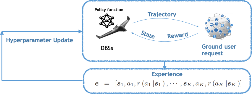 無人機架載的空中無線通信平臺提供了一種經濟、有效、靈活的未來無線網絡擴容方案。然而,用以實現對動態不可測地面用戶請求的按需服務的無人機基站(DBS)需要機敏地應對用戶請求的不確定性。具體地來講,為實現這種按需服務,DBS的軌跡必須得到適應性的調整以滿足動態的用戶訪問請求。為此,我們提出了一種元學習算法。該算法通過自動、適時地在線調整軌跡優化強化學習(RL)方案的超參數來幫助DBS適應未知用戶請求。元學習算法基于有限的以往經驗,提供了一種在陌生環境中快速調整DBS軌跡的解決方案。與傳統策略梯度算法相比,經過元學習調諧的RL同樣擁有極低的計算復雜度,卻可以更快地收斂到對未知用戶請求實現全面覆蓋的最優軌跡。