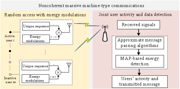 大規模機器通信是未來無線通信網絡的重要場景和關鍵技術。在這一典型場景中,基站需要支持海量的設備接入;但是,同一時間段內往往只有少量設備處于活躍狀態需要接入基站,即設備的接入具有稀疏性。活躍用戶的檢測和用戶傳輸信息的恢復問題,是下一代網絡研究中的熱點問題。與以往研究不同的是,本文側重于考慮短包傳輸和低信噪比場景下的非相干能量調制通信方式,該方法具有比相干傳輸更高的系統吞吐率。