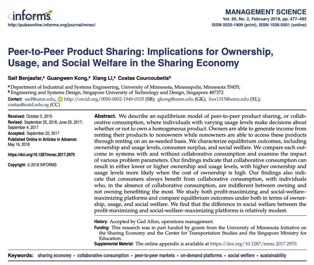 ? ? ? ?最后,這篇論文通過引用經濟學、社會學和公共政策等相近領域的許多論文,與其他學科相聯系,有助于將運營管理學科定位在共享經濟研究的前沿。