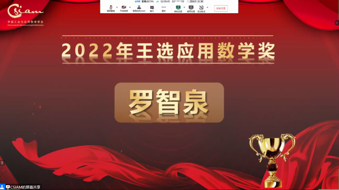 副校長羅智泉院士榮獲中國工業與應用數學學會首屆王選應用數學獎
