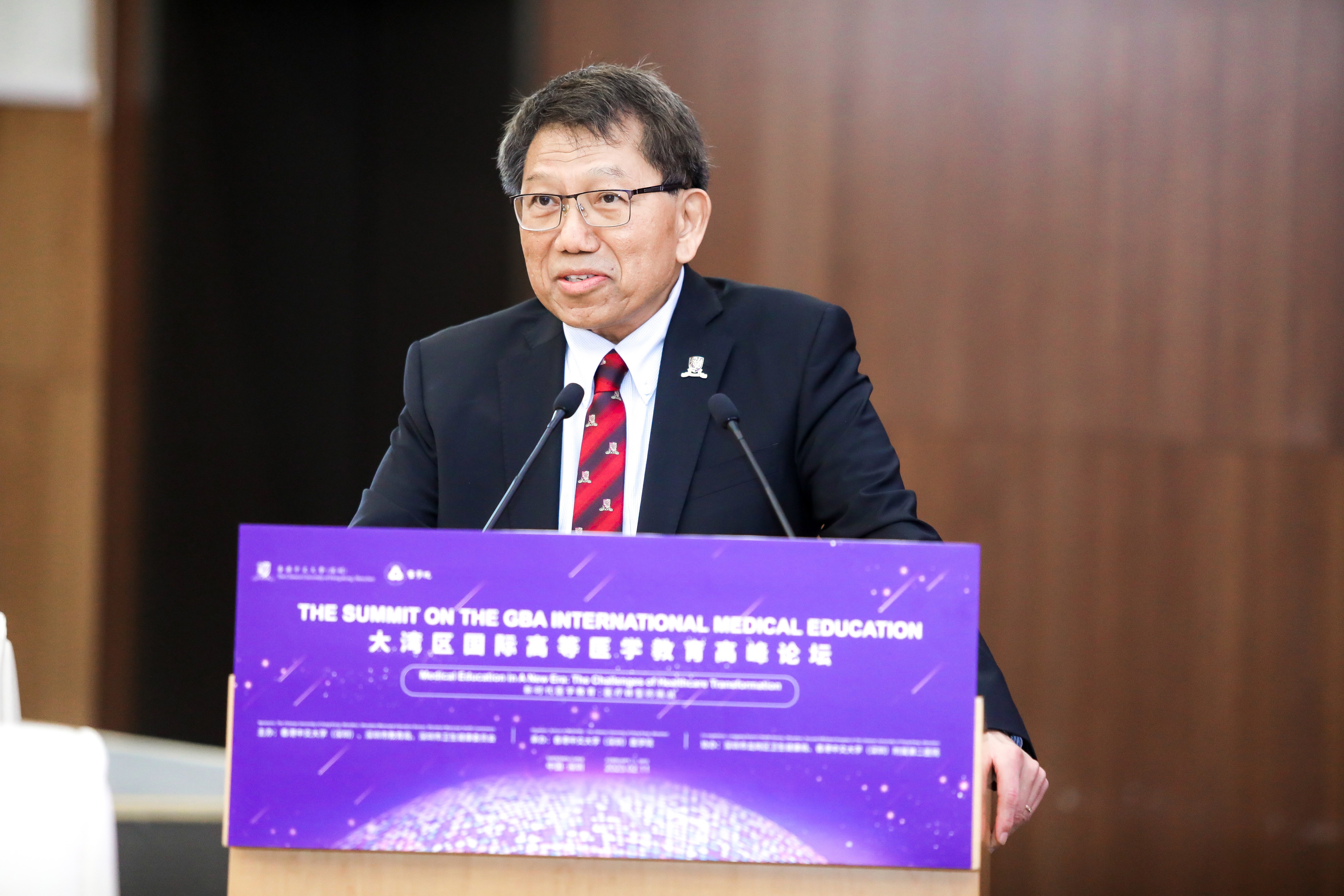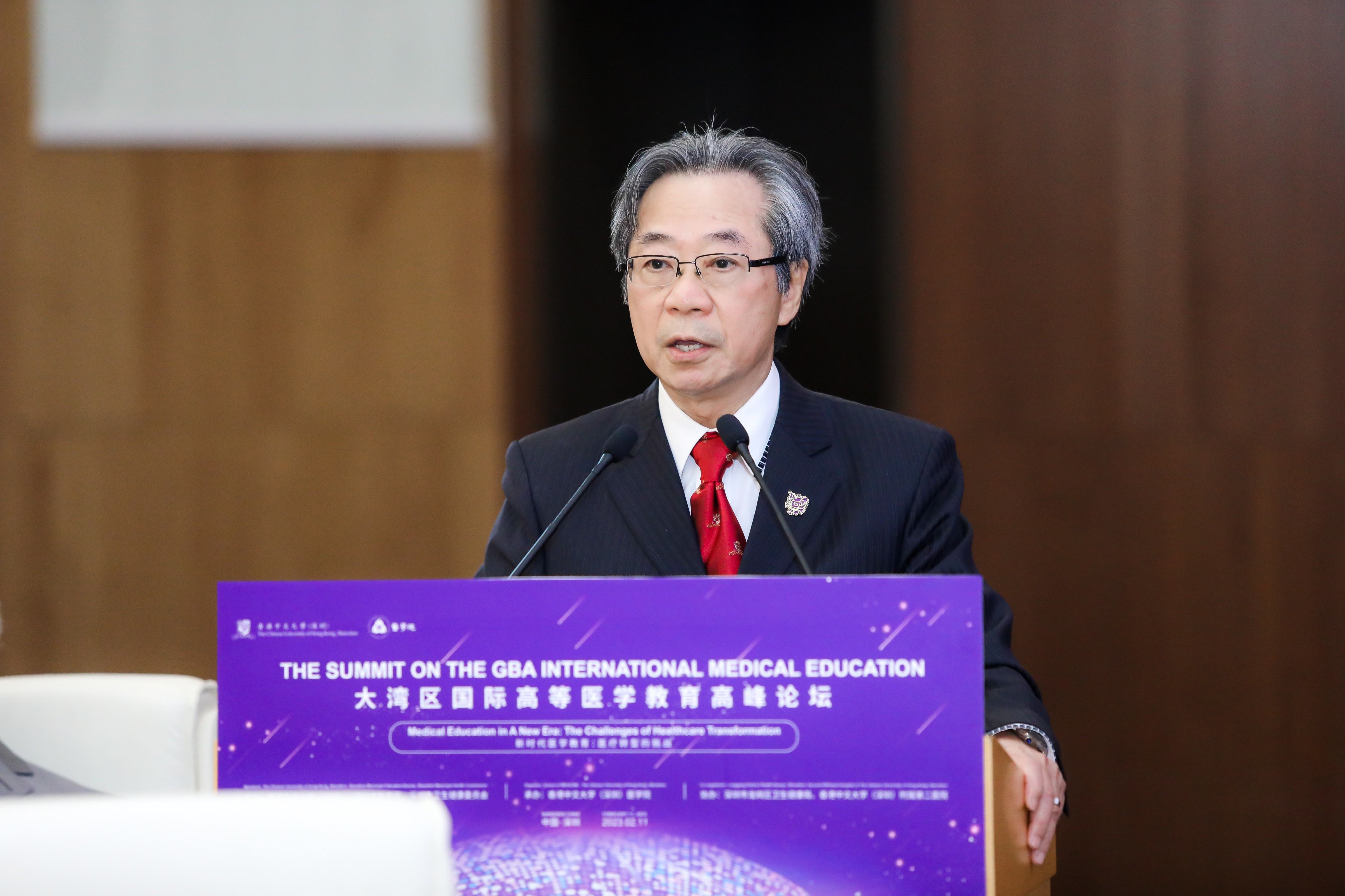 為積極探索新時代背景下醫學教育及醫療轉型的挑戰與機遇,尋求新時代醫學教育的新模式、新路徑,2月11日,由香港中文大學(深圳)、深圳市教育局、深圳市衛生健康委員會主辦,香港中文大學(深圳)醫學院承辦的“大灣區國際高等醫學教育高峰論壇——新時代醫學教育:醫療轉型的挑戰”在香港中文大學(深圳)舉辦。本次論壇由香港中文大學(深圳)校長徐揚生教授擔任大會主席,香港中文大學(深圳)醫學院創院院長鄭仲煊教授擔任大會執行主席,香港中文大學校長&香港中文大學(深圳)理事會理事長段崇智教授出席活動。邀請到國家衛健委領導、深圳市政協副主席吳以環女士等省市領導、國內外醫學院校領導、大學主管領導及各部門負責人出席活動。