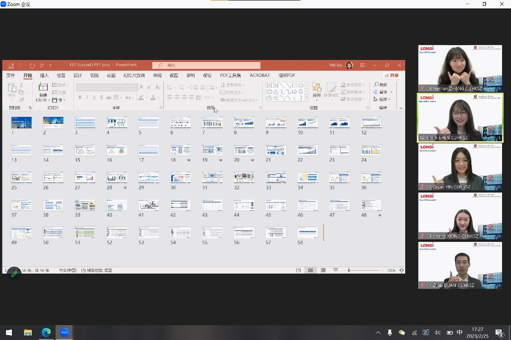 葉帥教授作為我們的指導教授,從初賽報告到最終答辯的整個賽程里一直不遺余力地給予我們專業性的指導和支持。在和葉教授討論決賽報告時,他總能一針見血地指出估值邏輯或行業分析里需要商榷的點,讓我們能夠有的放矢地講述我們的隆基故事。此外,他還親歷親為地扮演評委,為我們模擬了答辯的環節。在教授全程英文的引導中,我們都進入了狀態,也意識到彼此的配合還需認真打磨。