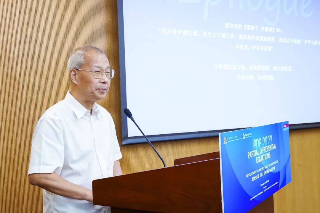 “世界萬物,大至宇宙,小至基本粒子,無不在時空中運動變化,考察這些運動與變化,往往可以用某些物理量關于空間與時間的變化來描述,這就是偏微分方程與方程組。因此偏微分方程是研究自然現象和社會現象的重要工具。”潘教授如此形容偏微分方程。在2022年9月24日至25日舉行的“偏微分方程:分析、幾何與拓撲的相互作用”研討會上,潘教授引用了西漢劉安《淮南子. 齊俗訓》作為會議的結語:“往古來今謂之宙,四方上下謂之宇,道在其間而莫知其所。故其見不遠者,不可與語大;其智不閎者,不可與論至。”而這句話恰好詮釋了他對偏微分方程的理解。