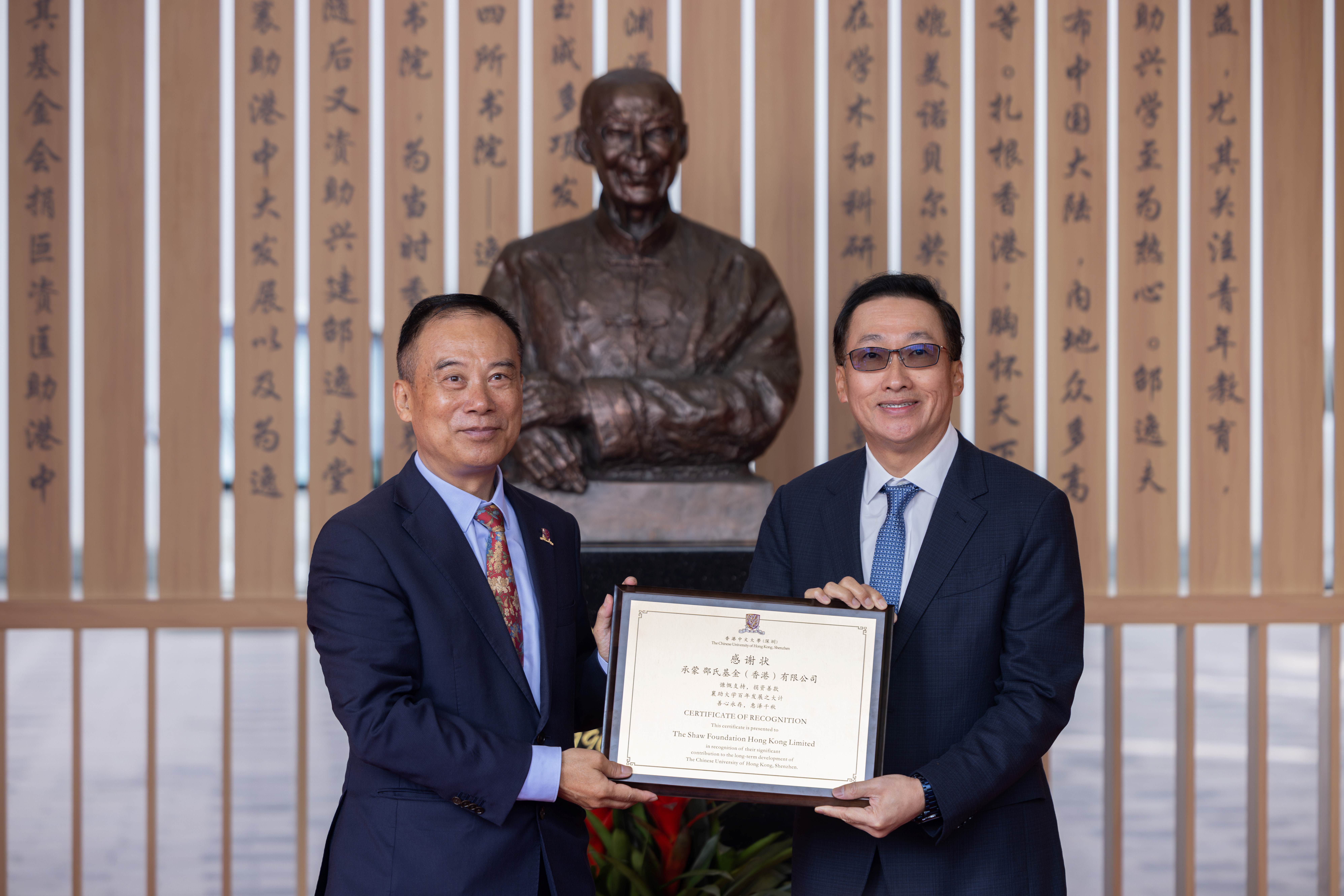 邵逸夫先生銅像揭幕儀式在港中大(深圳)逸夫書院舉行