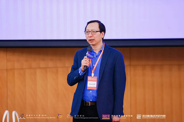 香港中文大學(深圳)經管學院、深圳高等金融研究院、深圳數據經濟研究院學術院長,普林斯頓大學教授熊偉以東道主的身份對大家的到來表示熱烈歡迎。他向與會嘉賓簡單介紹了港中大(深圳)經管學院的發展情況,包括師資力量與招生情況等。他表示,經過近十年的快速發展,經管學院作為一所國際化的高水平研究型學院,一直為培養具有國際視野和創新能力的優秀人才,推動學術研究不懈努力。