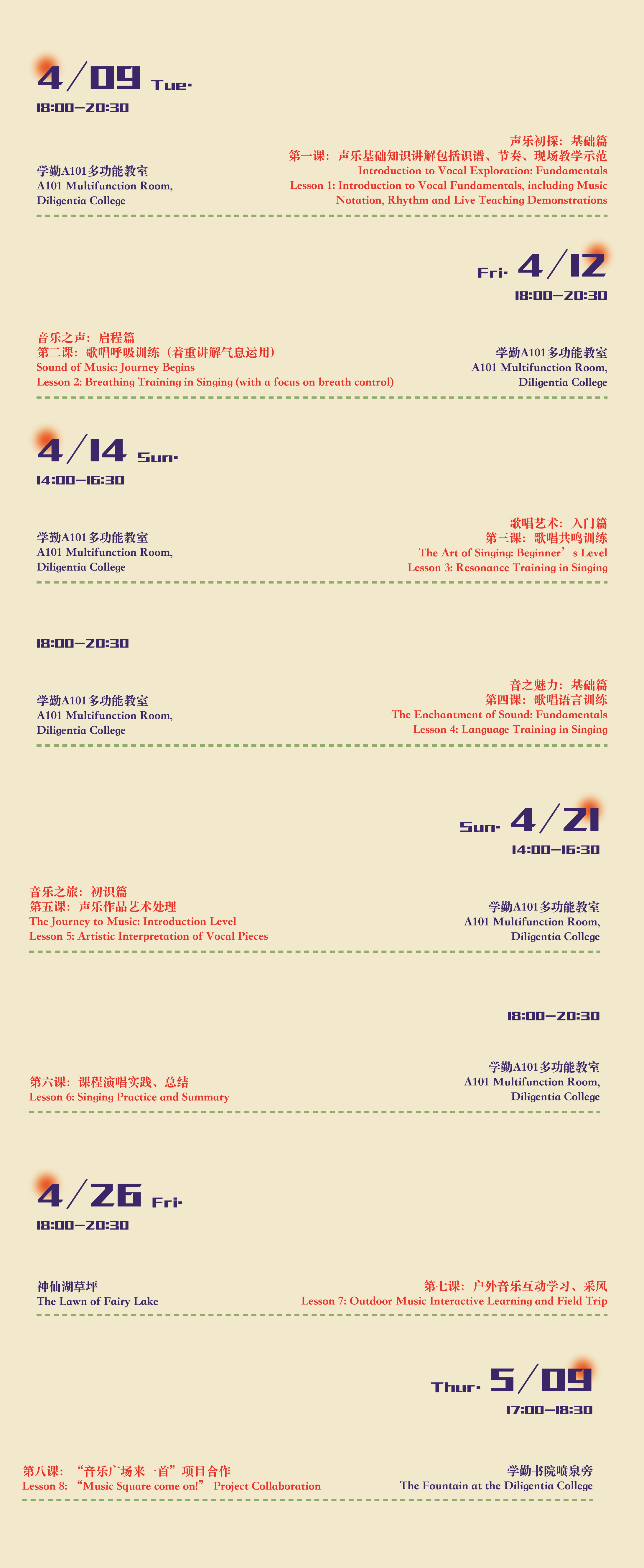 為確保課程有序進(jìn)行,我們將收取每位參與者100元的活動押金。押金退還規(guī)則:全勤且不遲到不早退,則退還全部押金;如若缺席一次及以上,活動押金則不予退還并直接進(jìn)入大學(xué)藝術(shù)發(fā)展基金賬戶。如因不可抗力因素缺席(僅一次),押金不會扣除。