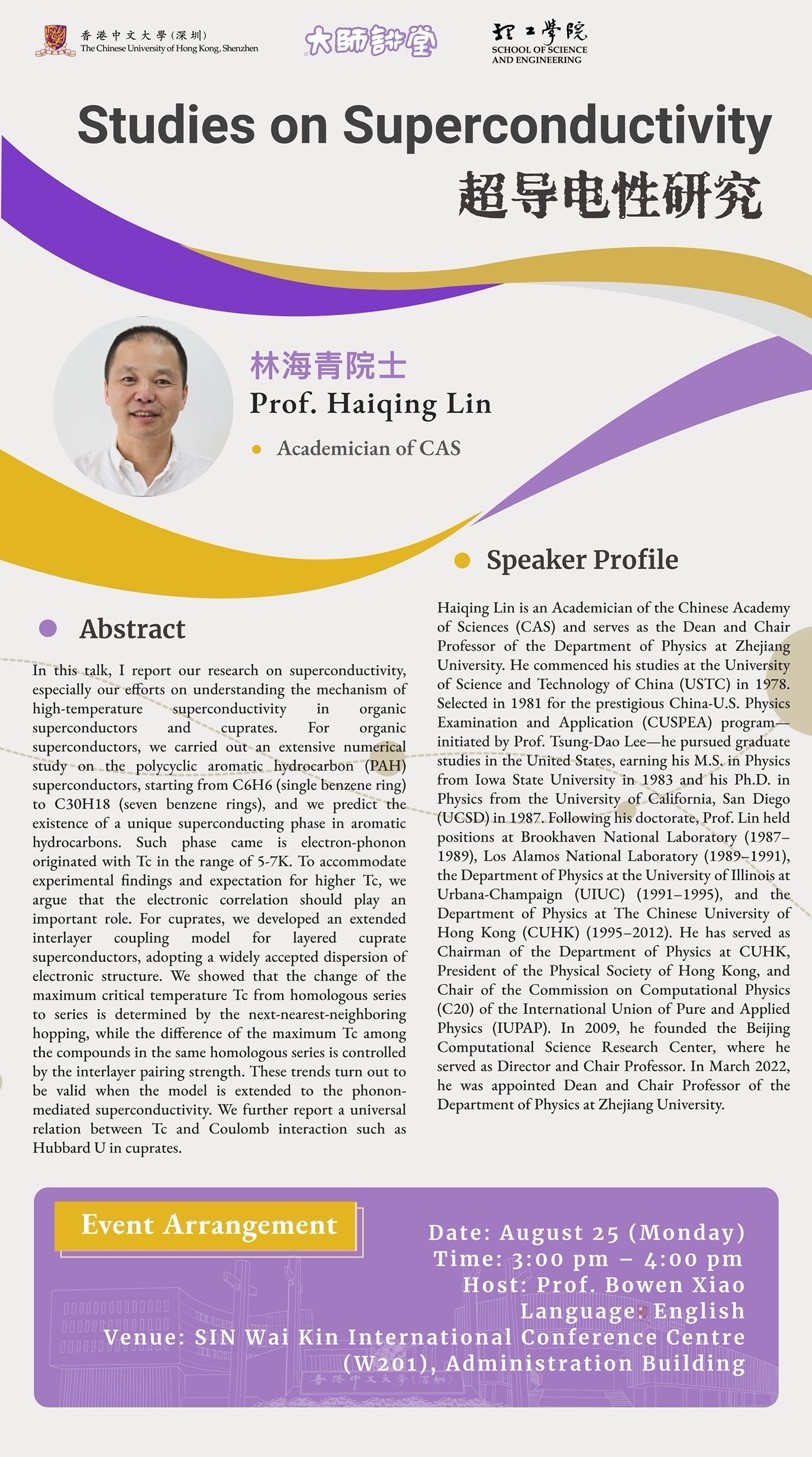 本次報告將介紹我們在超導電性領域的研究進展,重點闡述為理解有機超導體和銅氧化物高溫超導機理所開展的工作。在有機超導體方面,我們針對多環芳烴(PAH)超導體,從苯(C6H6)到C30H18(含七個苯環)進行了系統的數值研究,并預言芳香烴中存在一個獨特的超導相。該超導相源于電子-聲子相互作用,其臨界溫度(Tc)在5-7 K范圍內。為解釋實驗發現、以期實現更高的臨界溫度,我們論證了電子關聯效應在其中扮演著重要角色。銅氧化物超導體方面,我們基于一種被廣泛認可的電子結構色散關系,為層狀銅氧化物超導體構建了擴展的層間耦合模型。研究表明,不同同系物中最大臨界溫度Tc的差異主要由次近鄰躍遷決定;而同一同系物內不同化合物的最大Tc差異則由層間耦合強度調控。當模型擴展至聲子媒介的超導電性時,上述趨勢依然成立。此外,我們還將進一步介紹銅氧化物中 Tc 與庫侖相互作用(如 Hubbard U)之間的普適關系。