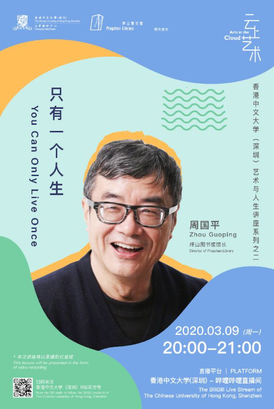 3月9日,周國平老師即將做客大學藝術中心-云上藝術活動,帶領學子們探尋和解讀“只有一個人生”。本期活動由大學藝術中心與坪山圖書館聯合推出。