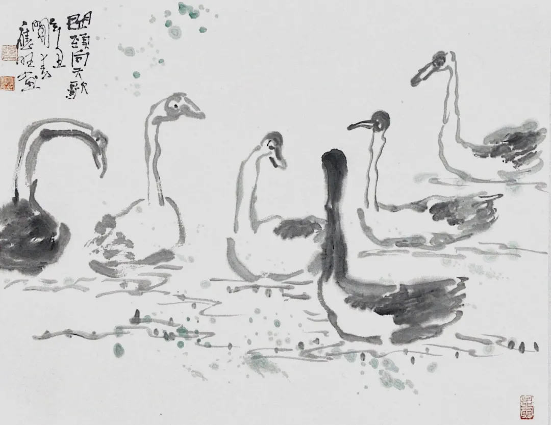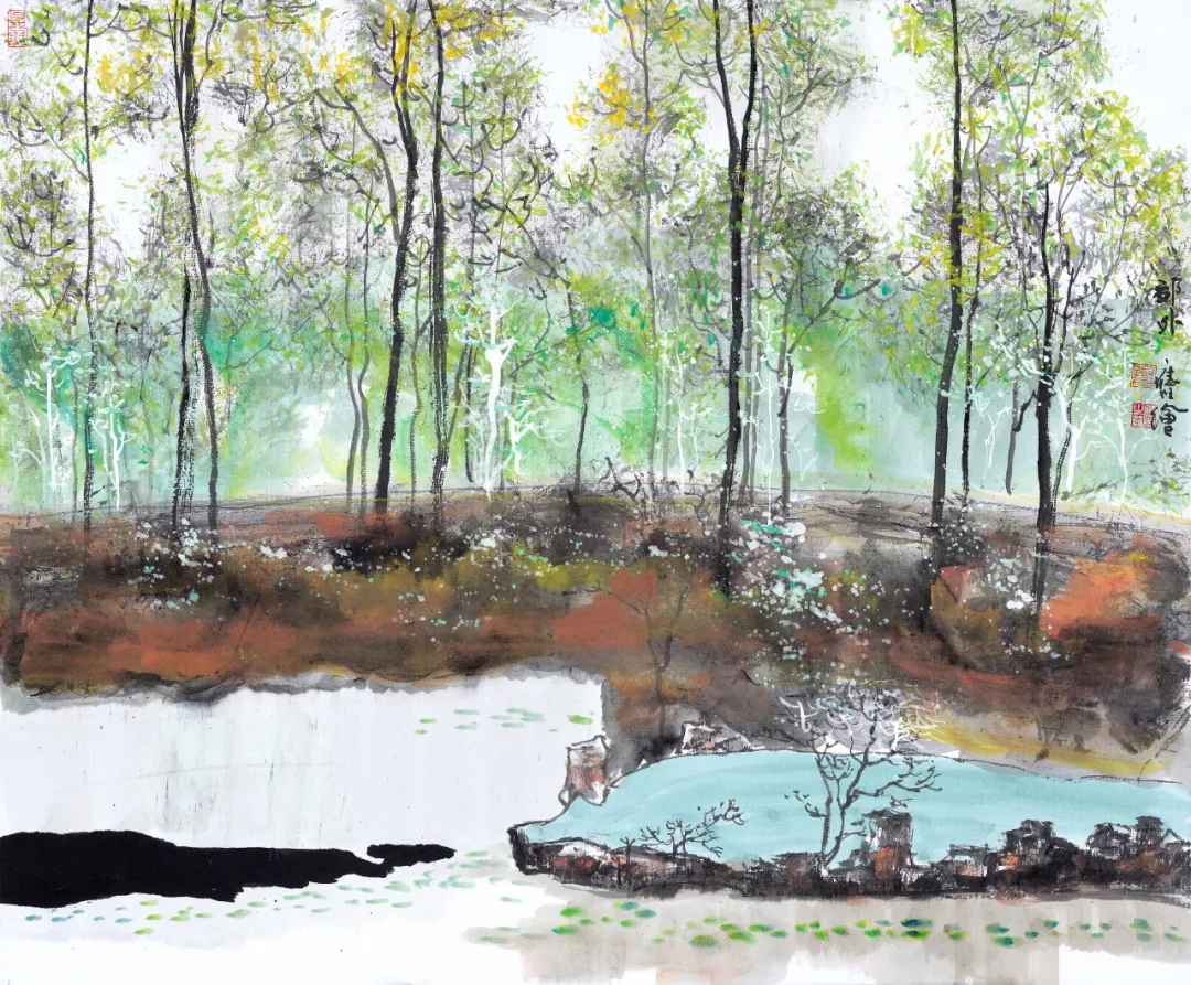 去歲初秋余于深圳見應旺畫作,水墨氤氳,彩筆點綴其中,驟見之,以為吳冠中余緒,嘆賞再三。今歲盛暑,余假深圳子非魚藝術館講學辦展,應旺又以數十幅畫作見示并屬題一二,水鄉靈秀,城市星列,墨彩華章,滿目粲然,較去歲所作又有大進。應旺早年即接觸書畫名家,收藏又富,是以見多識廣,眼界高闊,既敬畏傳統,又不受條條框框之束縛。故其一旦出手,涉獵于畫,即見其不凡之筆墨意境。